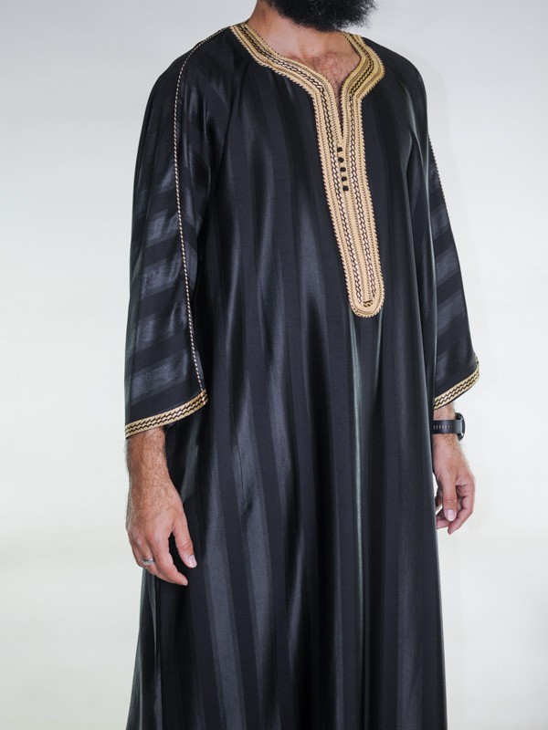 Marokkansk Gandoura Jawhara - sort/guldbroderi