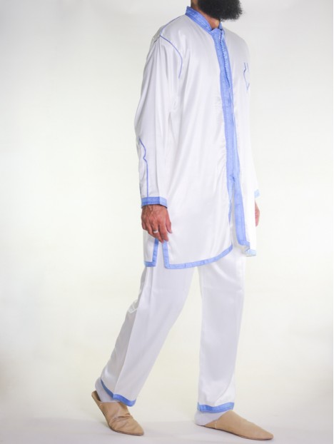2-delt Jabador til mænd - råhvid med cyanblåt broderi