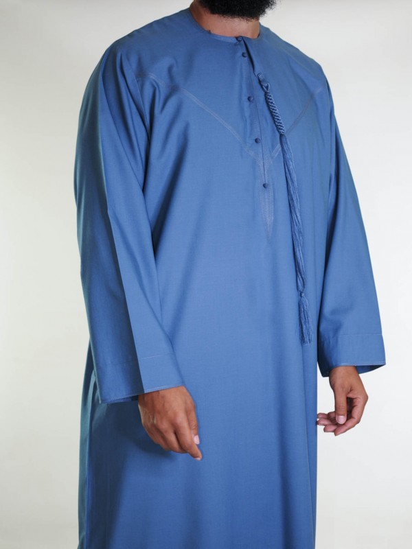Denimblå emiratisk qamis - bomuld