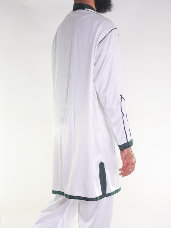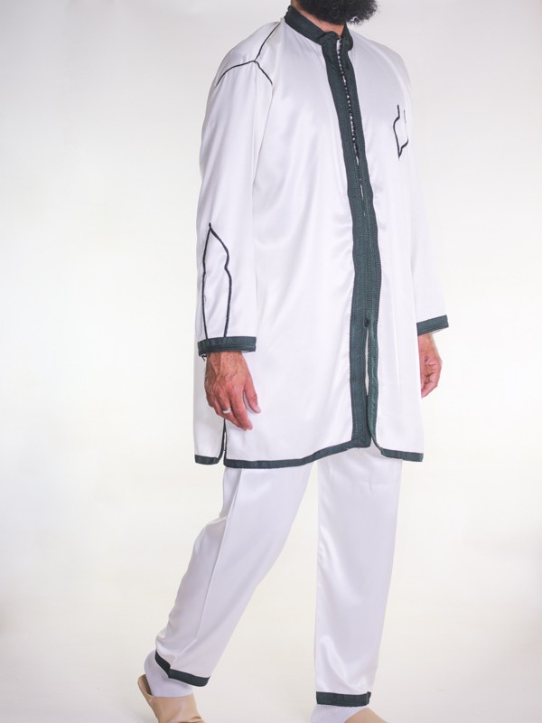2-delt Jabador til mænd - råhvid med grønt broderi