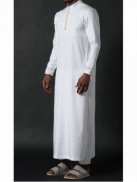 Prestige Qabail Modell aus zwei Materialien: Oberteil aus Baumwolljersey, unterteil aus Baumwoll-Polyviskose. Markante Goldstickerei am Kragen dezenter Reißverschluss am Halsausschnitt, Taschen mit Reißverschluss.