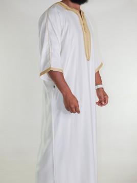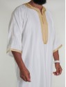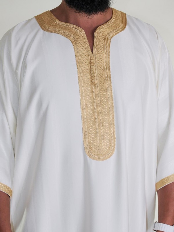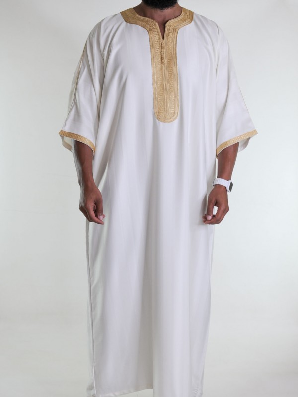 Gandoura marokkanische Djellaba Off-White / Goldene Stickerei