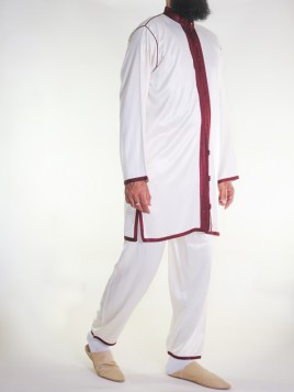Jabador Mann 2 Teile - Off-White mit Granat-Stickerei