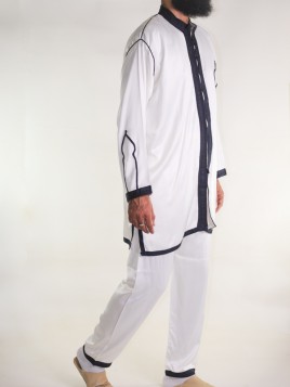 Jabador Herren Zweiteiler - Off-White mit Stickerei Marineblau