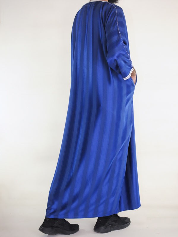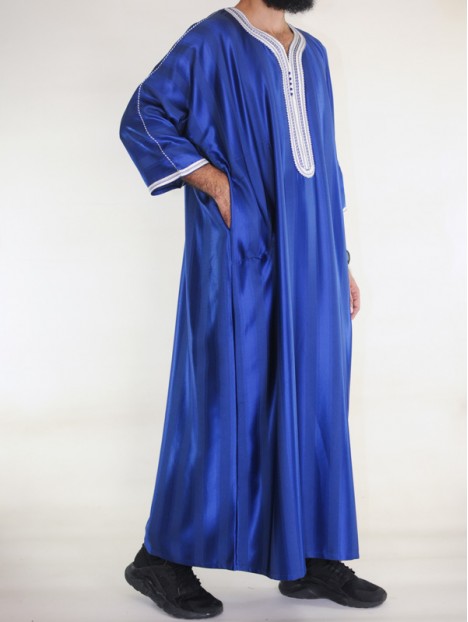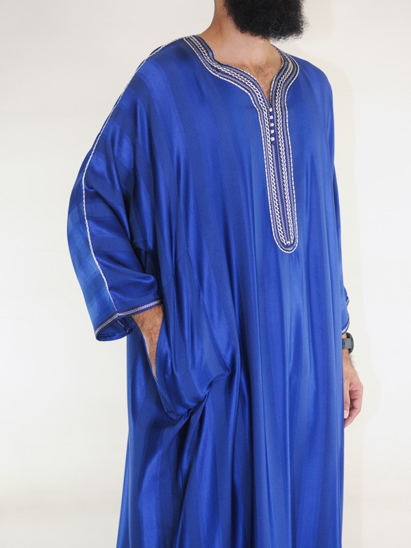 Gandoura marokkanische Djellaba Königsblau / Weiße Stickerei