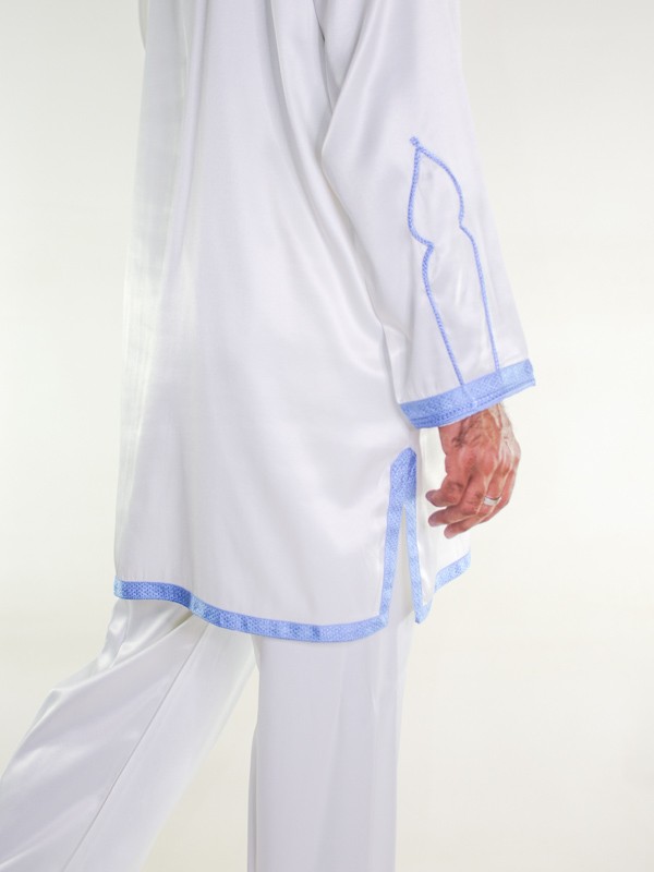 Jabador Herren Zweiteiler - Off-White mit Stickerei Cyan Blue