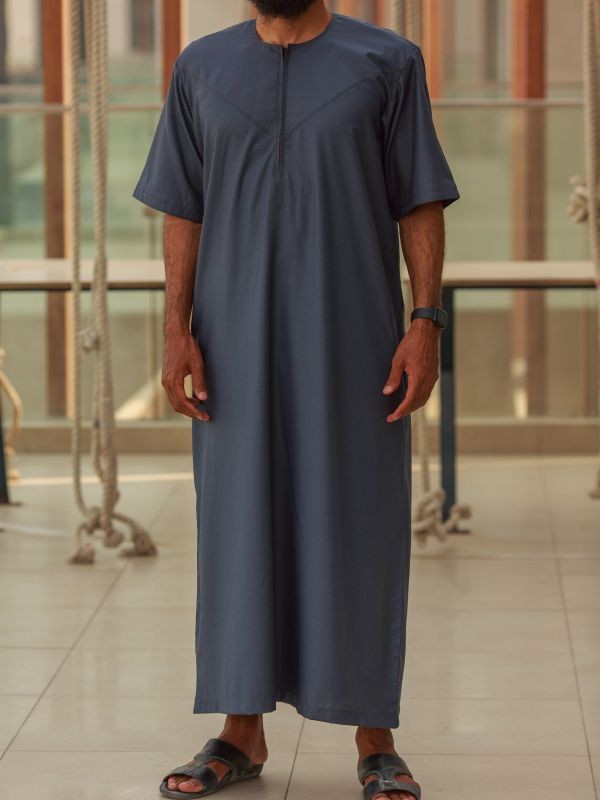 Emirates Qamis aus Baumwolle mit kurzen Ärmeln in Anthrazitgrau