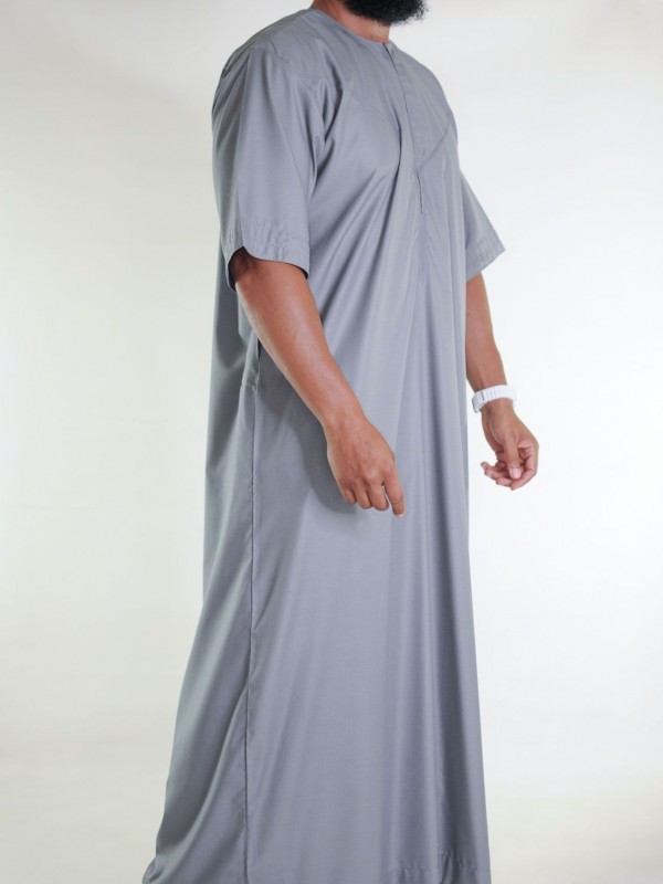 Emirates Qamis aus Baumwolle mit kurzen Ärmeln hellgrau