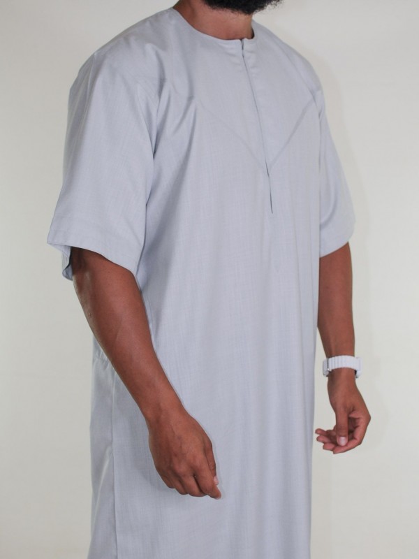 Emiratischer Qamis aus Leinen mit kurzen Ärmeln hellgrau