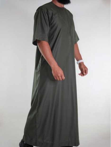 Emiratischer Qamis aus Baumwolle mit kurzen Ärmeln khaki