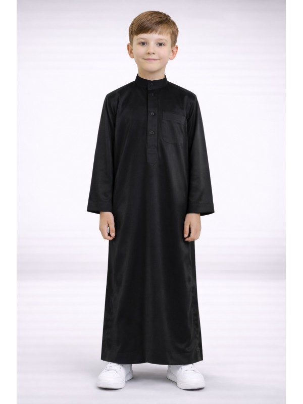 Qamis Kind saudisch satiniert - Schwarz