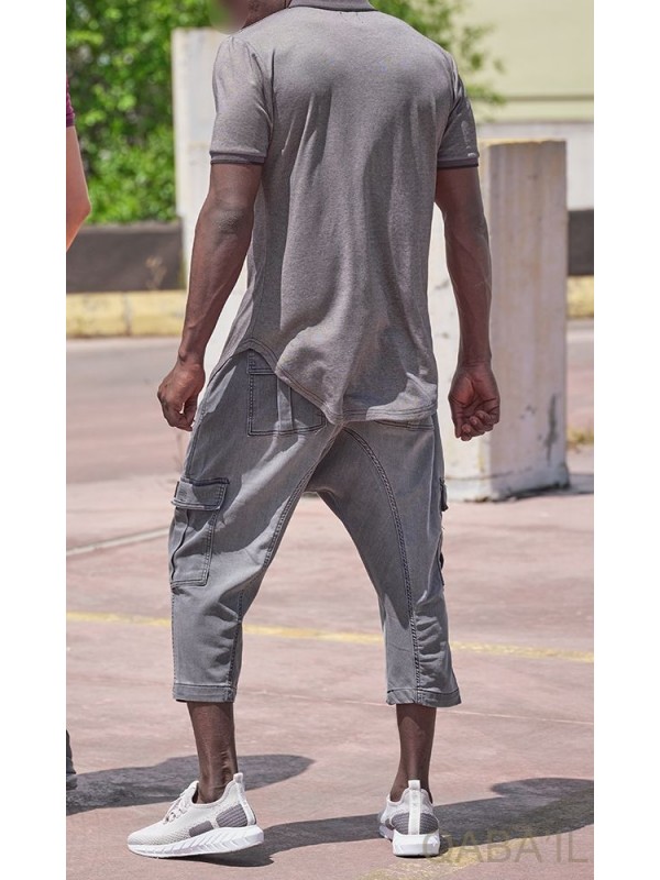 Kurze Cargo Jeans Stretch 9114 grau - Qabail
