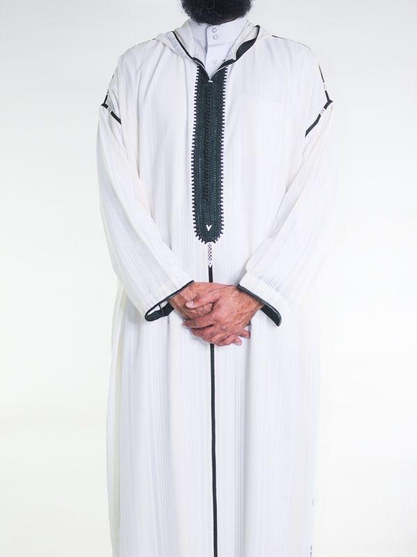 Moroccan muslin Djellaba - Off-white green