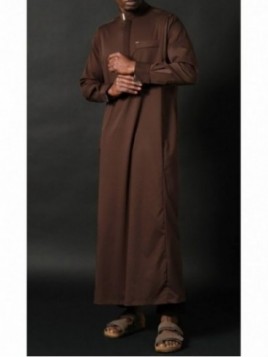 Bey long Qamis Brand Qabail Polyviscose material (cotton with elastane) Gold plaque on collar and breast pocket Elegant finishing
