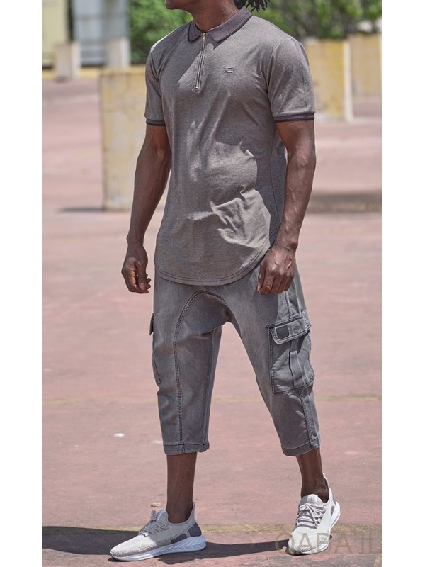 Cargo short stretch denim 9114 grey - Qabail