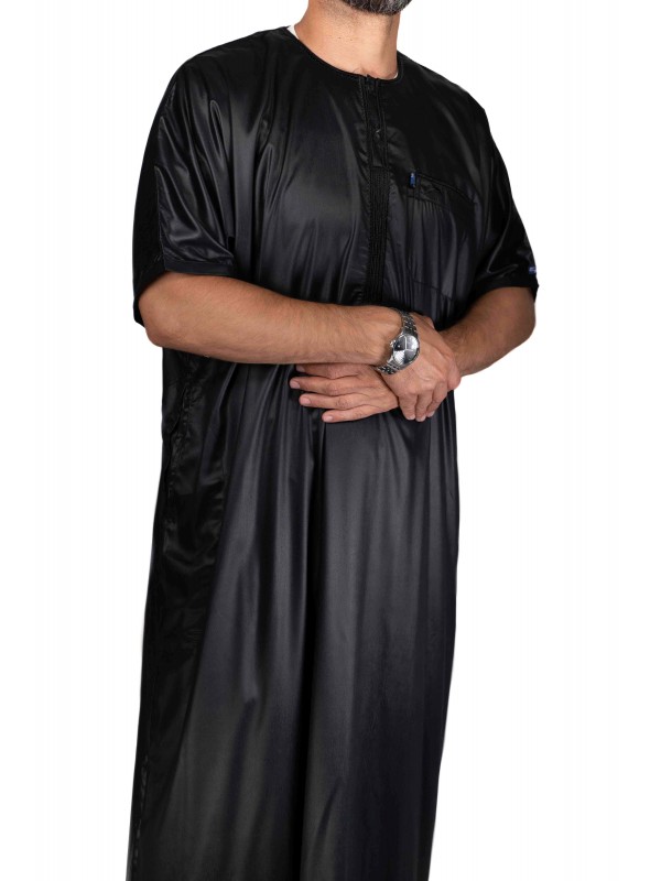 Qamis Ikaf Negro - Tejido de satén - Mangas cortas