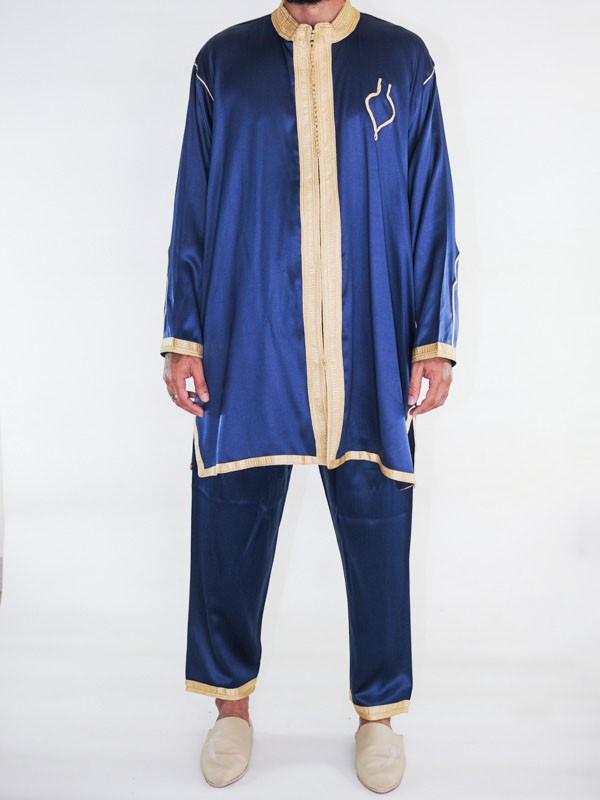 Jabador 2 piezas hombre - Azul marino con bordado dorado
