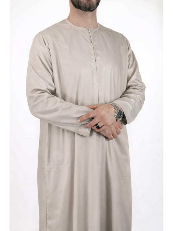 Qamis Emirati Beige/Gris - Satén Precioso