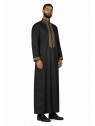Qamis Adam Negro - con bordado - Raso