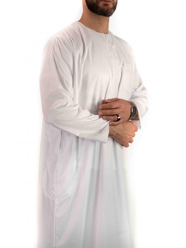 Qamis Ikaf Blanc - Tejido de satén - Manga larga