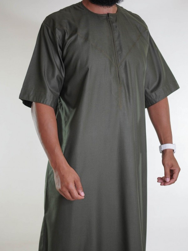 Qamis emiratíes de algodón de manga corta de color caqui