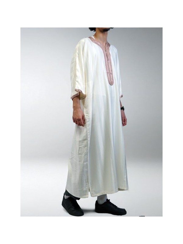 Gandoura marocaine jawhara - Blanc cassé/bronze
