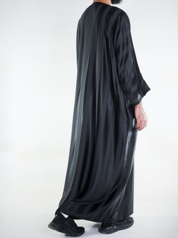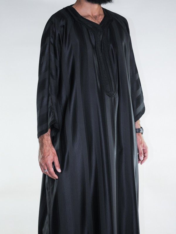 Gandoura marocaine Jawhara - Noir / Broderie ton sur ton