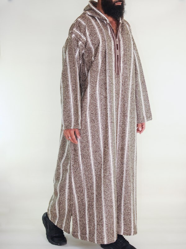 Ouazzania Moroccan Djellaba inverno - Marrone a righe