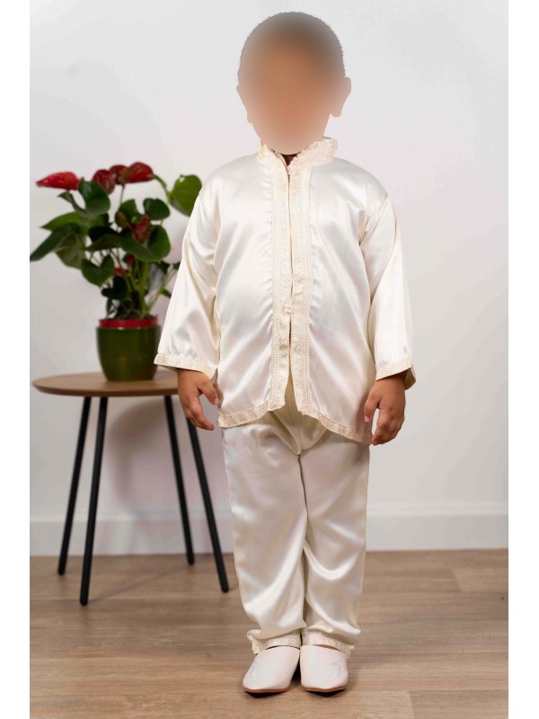 Jabador bambino 2 pezzi - Indumento per circoncisione infantile bianco sporco con ricamo crema