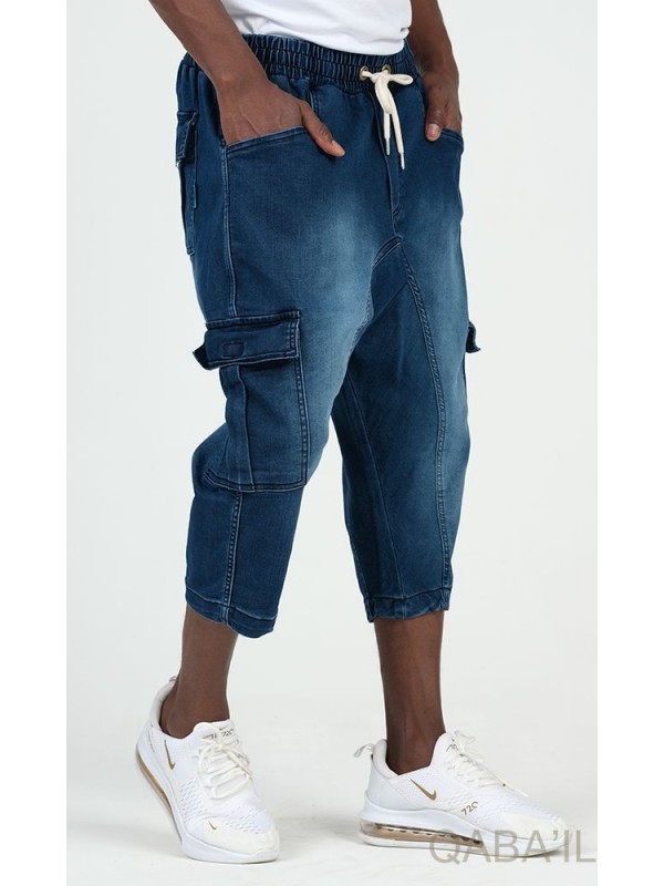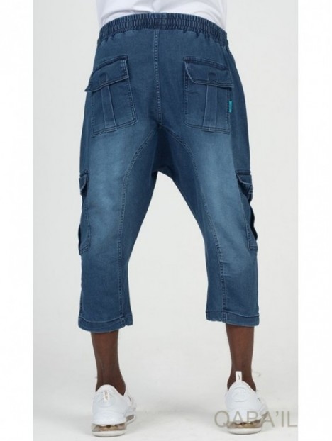 Pantalone cargo in denim elasticizzato 9114 blu grezzo - Qabail