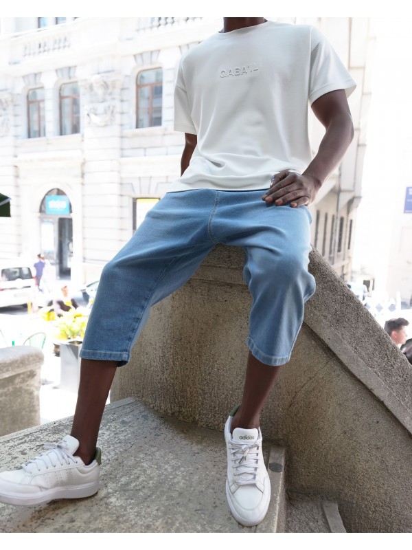 Bermuda in denim elasticizzato azzurro 5211 - Qabail