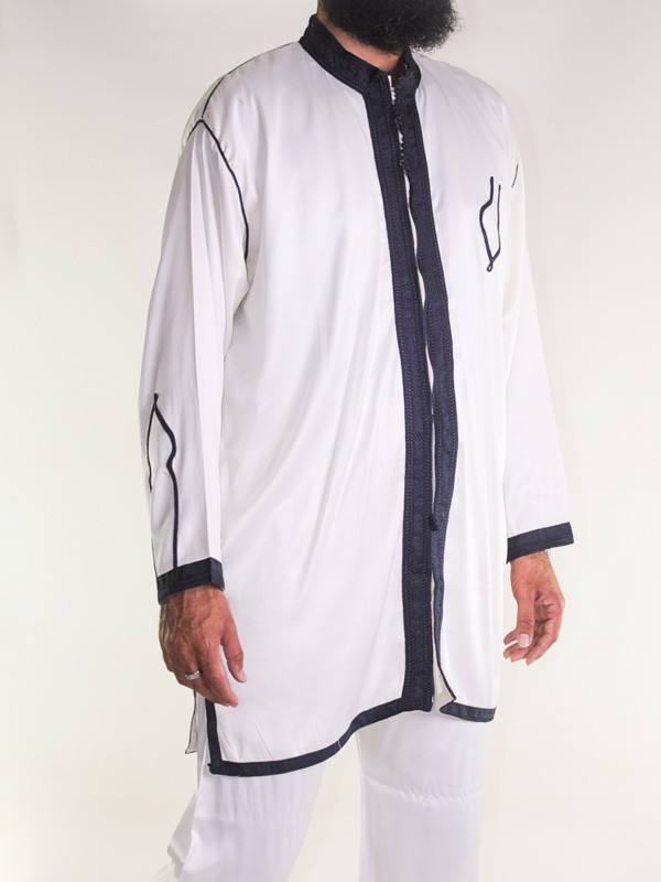 Jabador 2 pezzi da uomo - Bianco sporco con ricamo blu navy