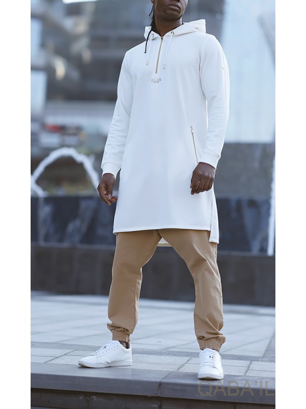 Pantaloncino basic con cappuccio Qamis ecrù/oro