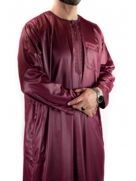 Atlas satin Bordeaux Qamis - maniche lunghe