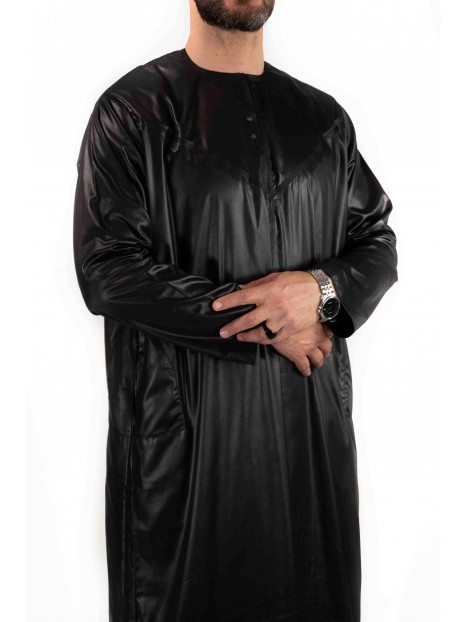 Zwarte Emirati Qamis - Satiné Kostbaar