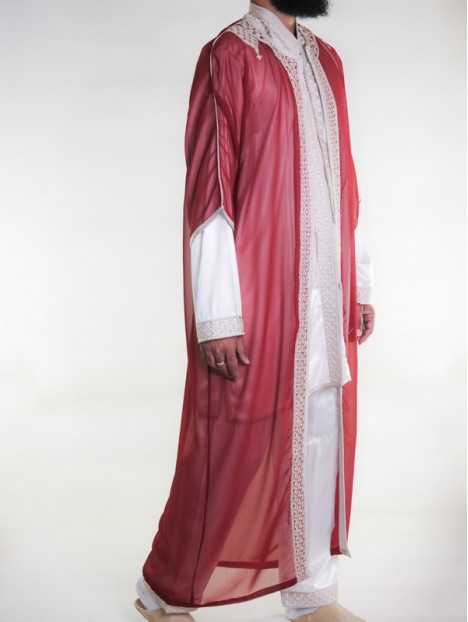 Heren 3-delige Jabador - Off-white en Granaat