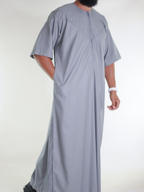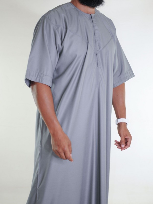 Emirati Qamis katoen korte mouwen lichtgrijs