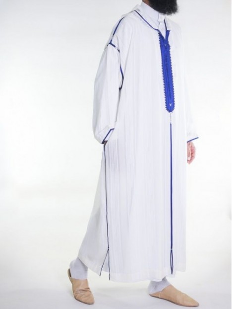 Marokkaanse mousseline Djellaba - Gebroken wit koningsblauw