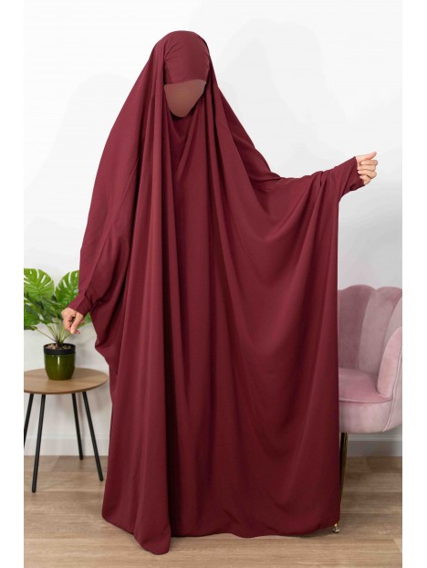 1-delige Saoedische Jilbab A0S Bordeaux 163 - wol perzik - El Bassira