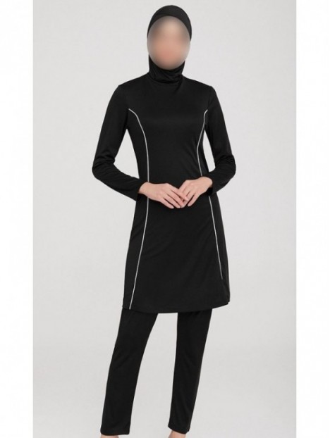 Zwarte lycra burkini met witte biezen 9021