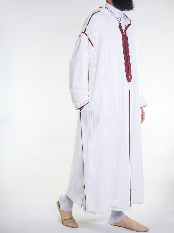 Djellaba de musselina marroquina - Borgonha esbranquiçado