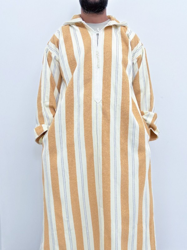 Djellaba marroquina às riscas Ouazzania - Branco/dourado