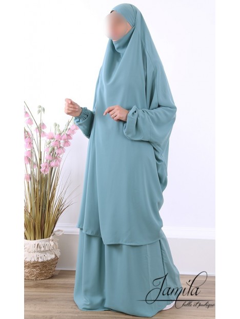Jilbab 2 peças saia verde esmeralda 2566 - microfibra - Jamila
