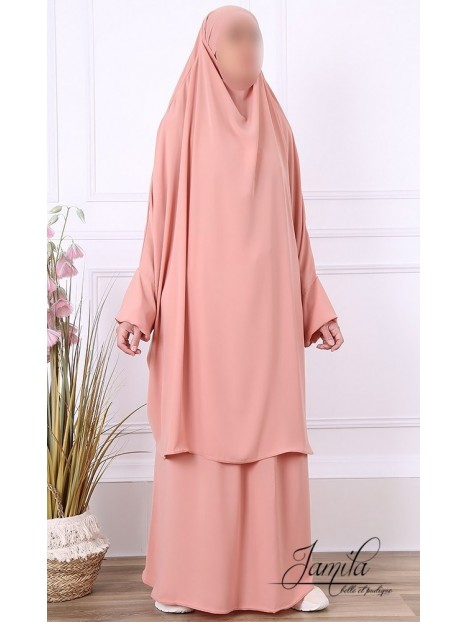 Jilbab saia 2 peças Rosa nude 2313 - microfibra - Jamila
