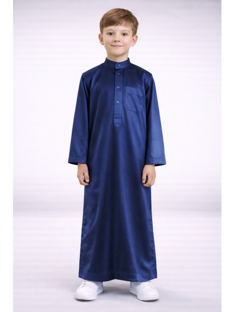 Qamis de criança saudita acetinado - Azul-marinho