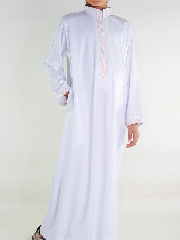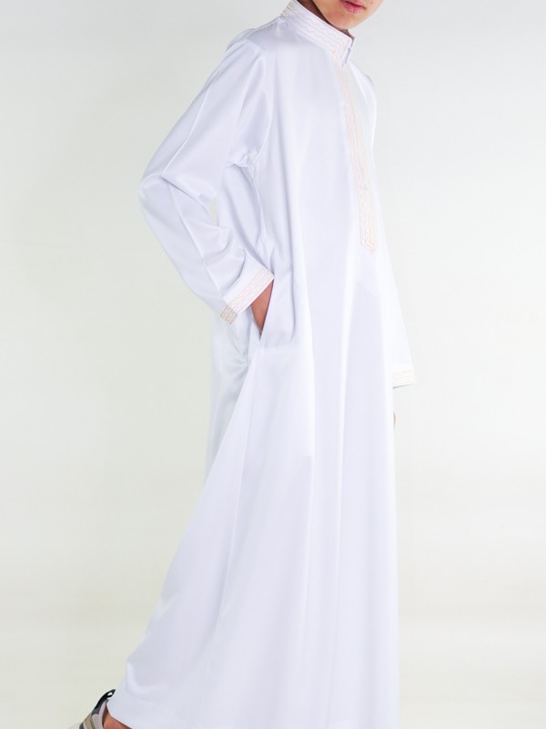 Sultão Qamis para criança - Branco e dourado