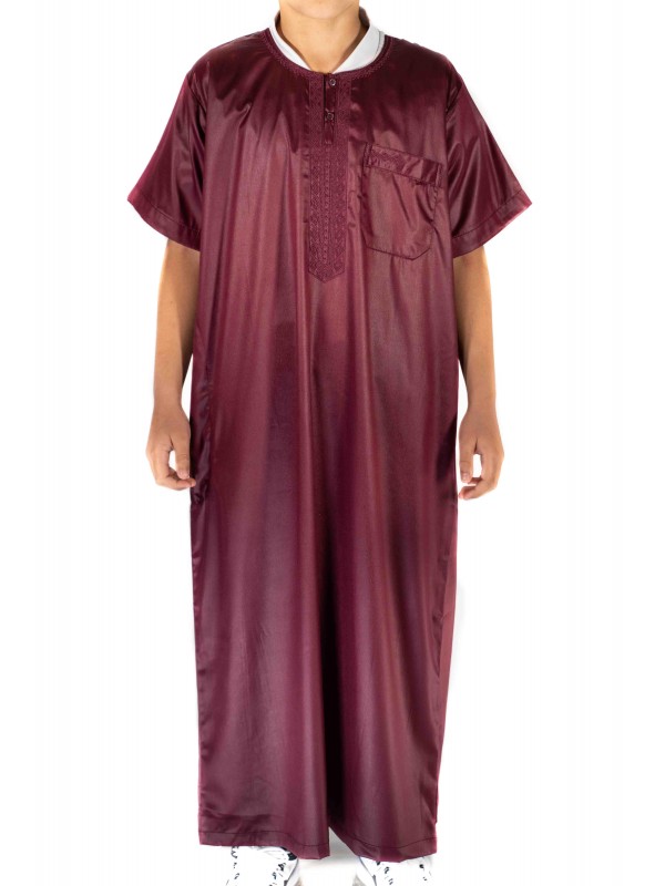 Qamis Criança / Adolescente Manga curta de cetim bordeaux - Atlas