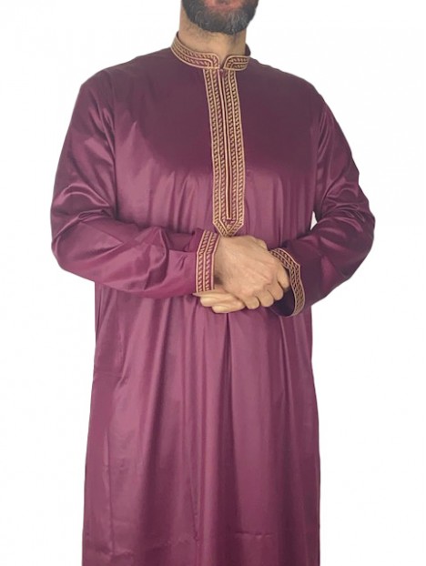 Qamis Sultan Bordeaux / Ouro - com bordado - Cetim