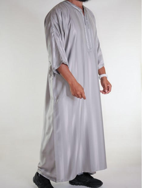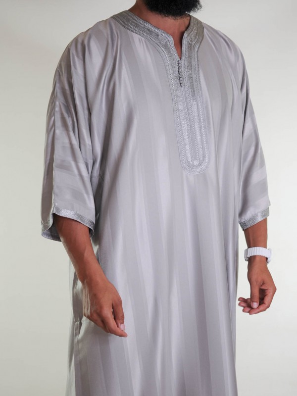 Gandoura Jawhara marroquina - Cinzento taupe / Bordado tom sobre tom