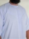 Qamis dos Emirados, em linho, de manga curta, azul claro